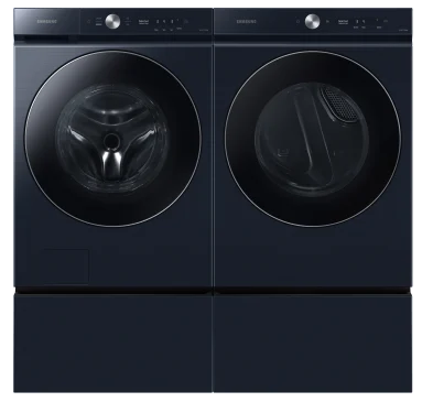 SAWADRED89002 Side-by-Side on Pedestals Front Load Washer and Electric Dryer Set in Navy