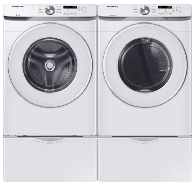 SAWADREW60003 Side-by-Side on Storage Drawer Pedestal Front Load Washer and Electric Dryer Set in White
