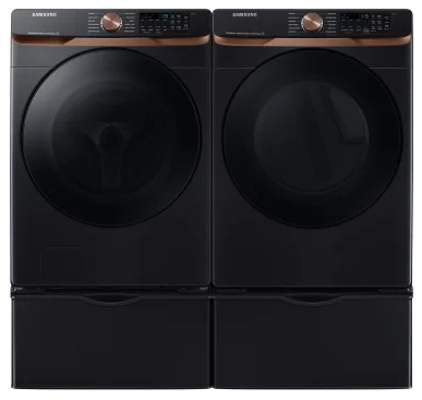 SAWADRGV83001 Side-by-Side on Pedestals Front Load Washer and Gas Dryer Set in Black