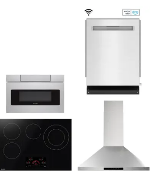SHARPRECTHODWMD100 5 Piece Kitchen Appliances Package with French Door Refrigerator